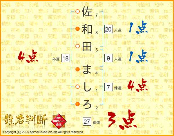 佐(7画)和(8画)田(5画) ま(4画)し(1画)ろ(2画)