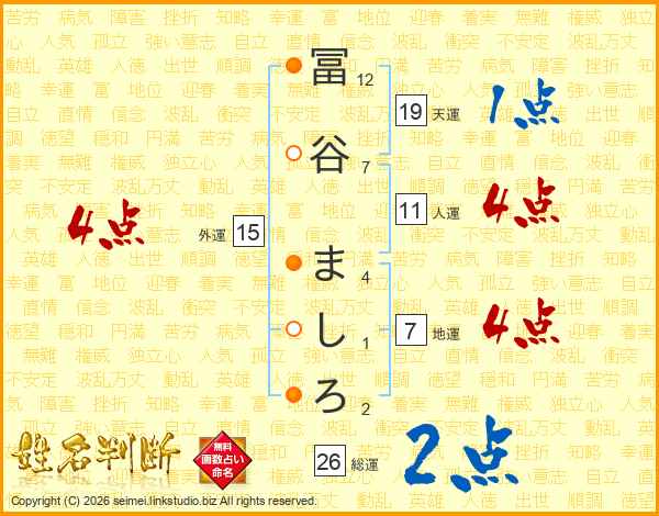 冨谷ましろさんの総運は26画の2点!