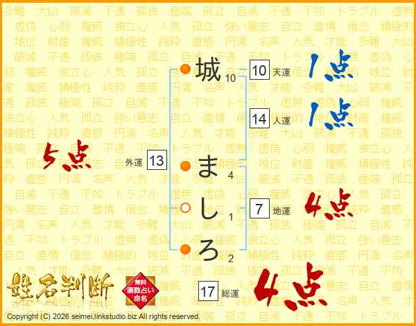 城ましろさんの人運は14画の1点!