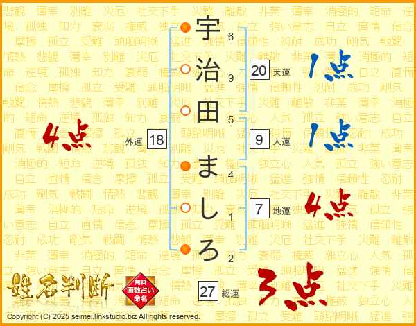 宇治田ましろさんの外運は18画の4点!