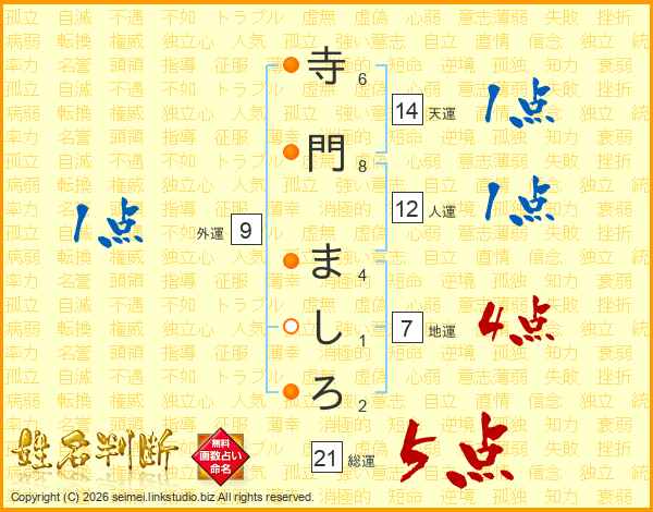 寺(6画)門(8画) ま(4画)し(1画)ろ(2画)