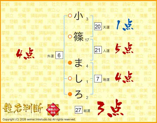 小(3画)篠(17画) ま(4画)し(1画)ろ(2画)