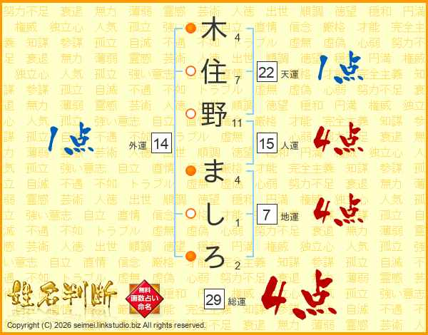 木住野ましろさんの総運は29画の4点!