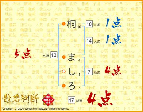 桐ましろさんの総運は17画の4点!