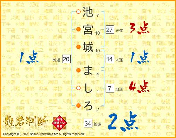 池宮城ましろさんの総運は34画の2点!