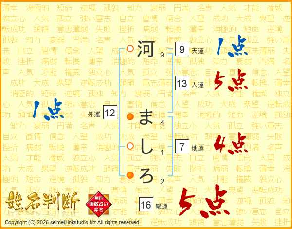 河ましろさんの人運は13画の5点!