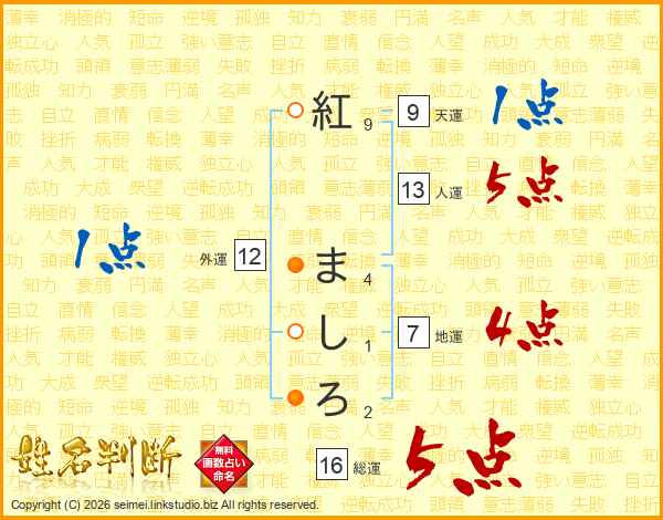 紅ましろさんの人運は13画の5点!