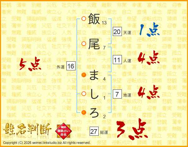 飯尾ましろさんの総運は27画の3点!