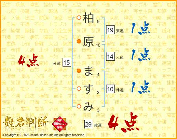 柏原ますみさんの総運は29画の4点!