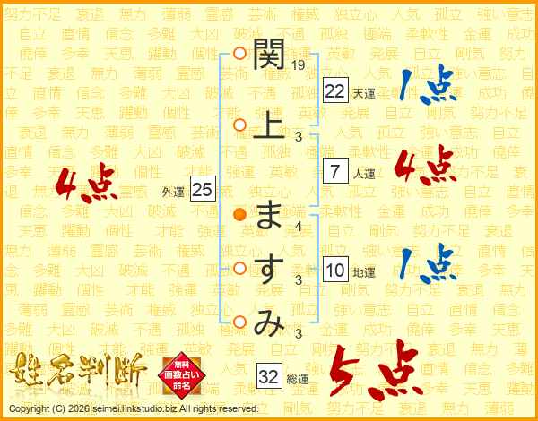 関上ますみさんの総運は32画の5点!
