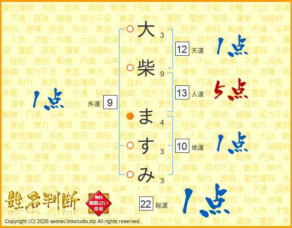 大(3画)柴(9画) ま(4画)す(3画)み(3画)