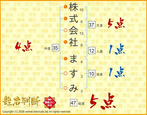 株(10画)式(6画)会(13画)社(8画) ま(4画)す(3画)み(3画)