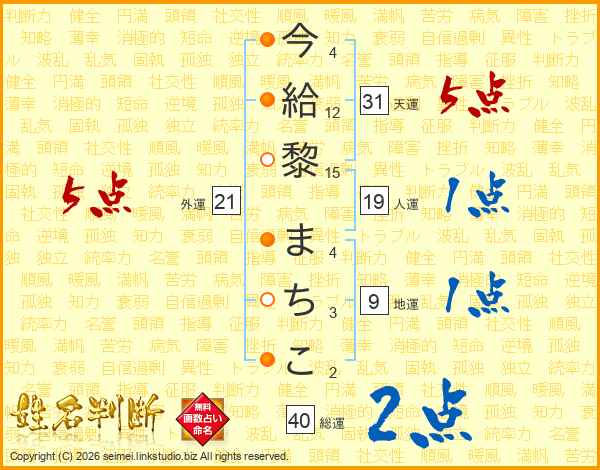 今給黎まちこさんの総運は40画の2点!