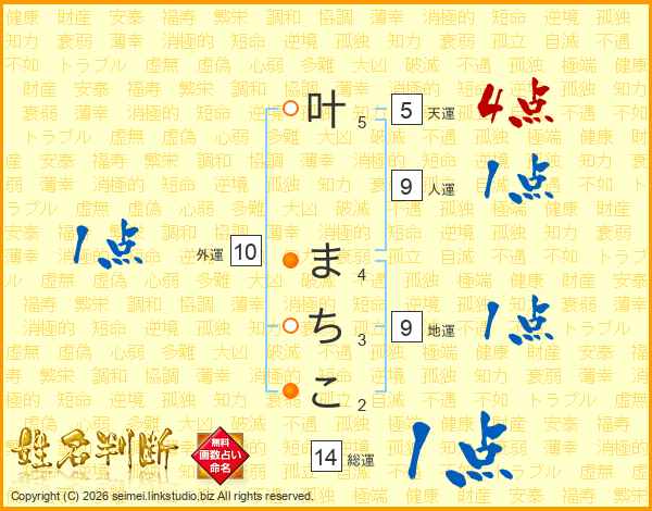 叶(5画) ま(4画)ち(3画)こ(2画)