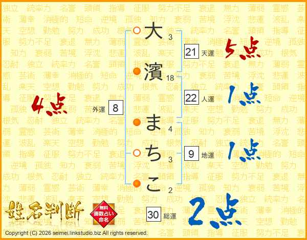大濱まちこさんの総運は30画の2点!