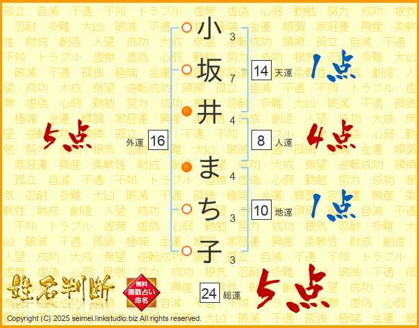小坂井まち子さんの外運は16画の5点!