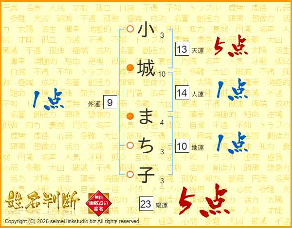 小城まち子さんの天運は13画の5点!
