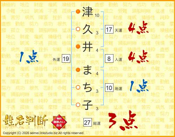 津久井まち子さんの総運は27画の3点!