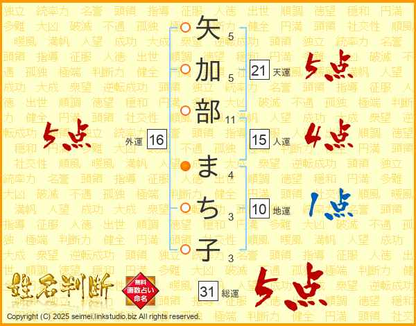 矢(5画)加(5画)部(11画) ま(4画)ち(3画)子(3画)