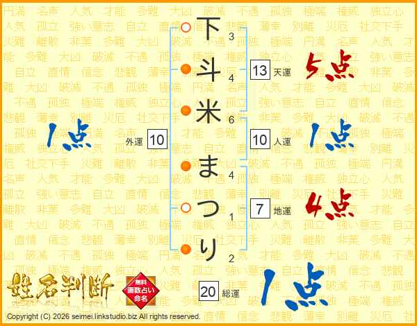 下(3画)斗(4画)米(6画) ま(4画)つ(1画)り(2画)