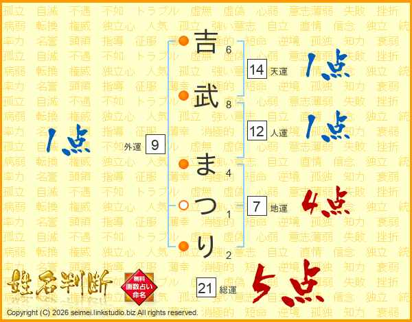 吉(6画)武(8画) ま(4画)つ(1画)り(2画)