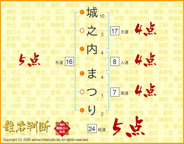 城之内まつりさんの外運は16画の5点!