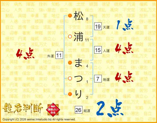 松浦まつりさんの総運は26画の2点!