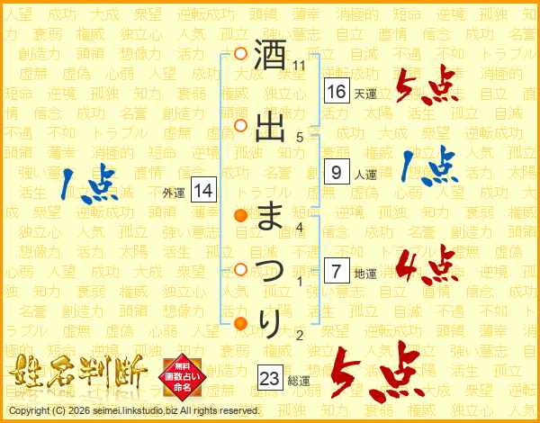 酒出まつりさんの総運は23画の5点!