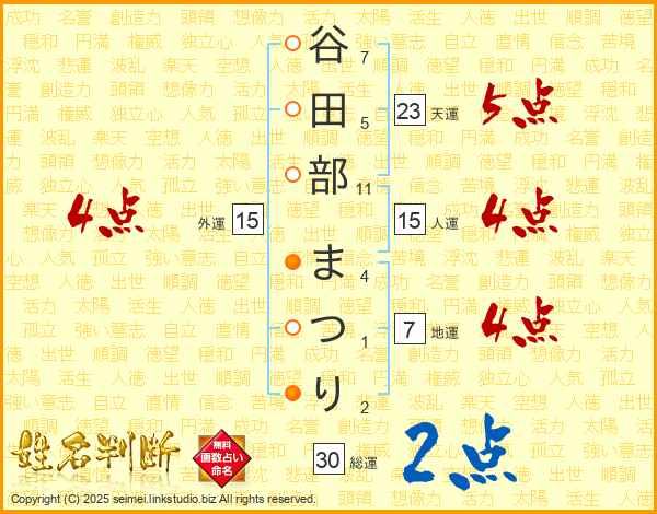 谷(7画)田(5画)部(11画) ま(4画)つ(1画)り(2画)
