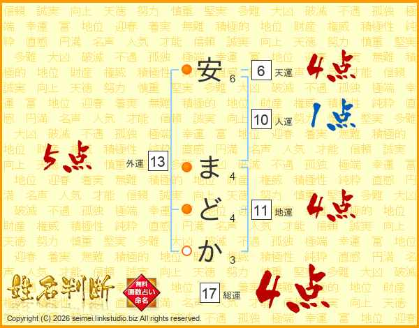 安まどかさんの総運は17画の4点!