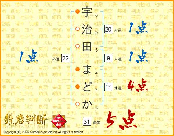 宇治田まどかさんの総運は31画の5点!