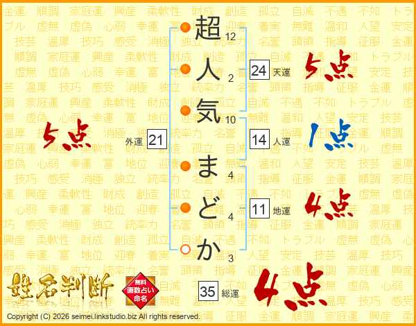 超人気まどかさんの総運は35画の4点!