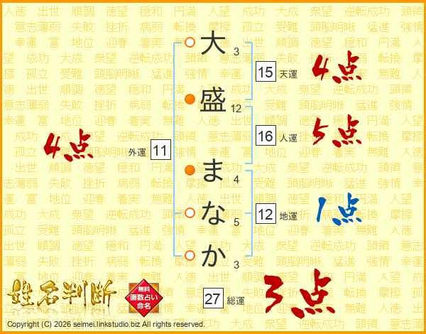 大盛まなかさんの天運は15画の4点!
