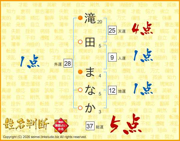 滝田まなかさんの天運は25画の4点!