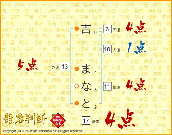 吉まなとさんの総運は17画の4点!