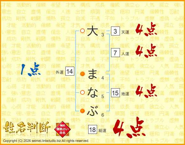 大まなぶさんの総運は18画の4点!