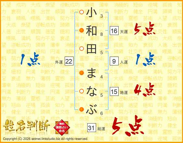 小和田まなぶさんの総運は31画の5点!