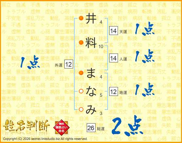井(4画)料(10画) ま(4画)な(5画)み(3画)