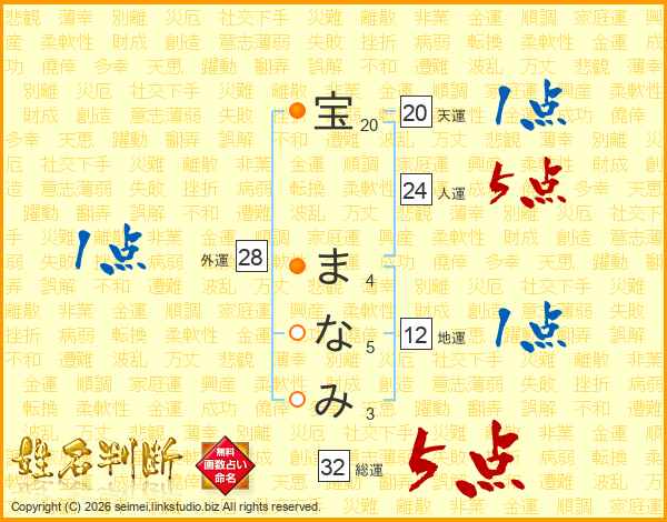 宝まなみさんの外運は28画の1点!