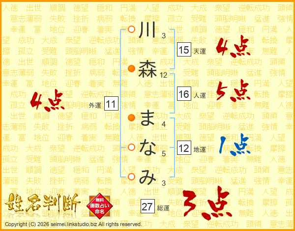 川森まなみさんの総運は27画の3点!