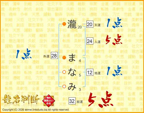 瀧まなみさんの外運は28画の1点!