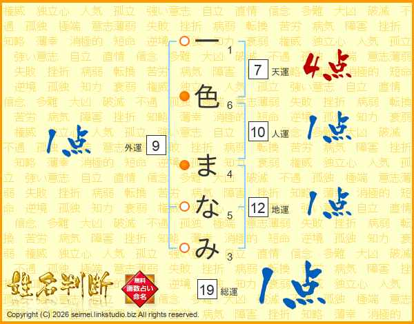 一色まなみさんの総運は19画の1点!