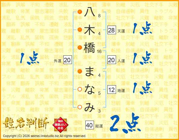 八木橋まなみさんの総運は40画の2点!