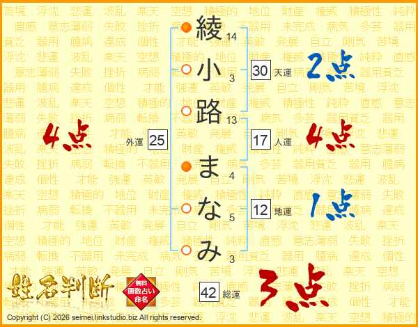 綾小路まなみさんの総運は42画の3点!