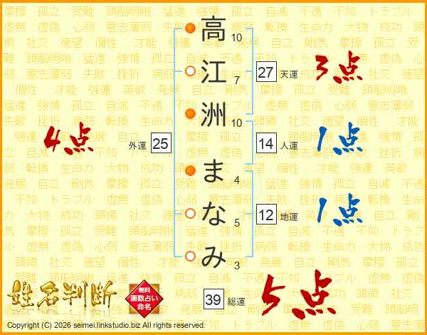 高(10画)江(7画)洲(10画) ま(4画)な(5画)み(3画)
