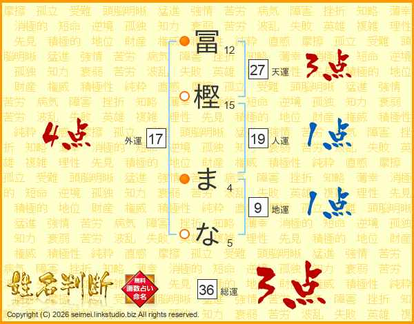 冨樫まなさんの外運は17画の4点!