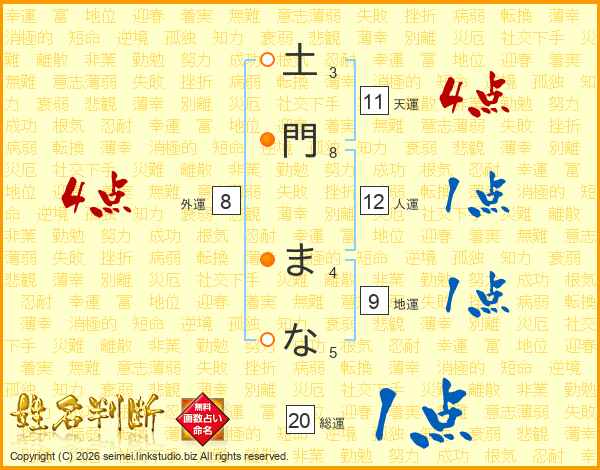 土(3画)門(8画) ま(4画)な(5画)