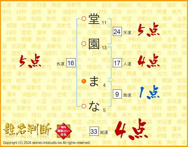 堂園まなさんの総運は33画の4点!