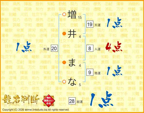 増井まなさんの総運は28画の1点!