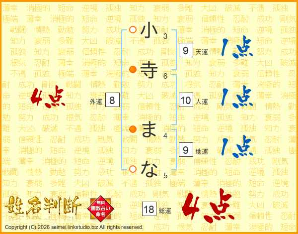 小寺まなさんの総運は18画の4点!
